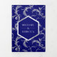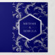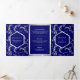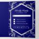 Royal Blue Silver Flourish Swirl Wedding Photo Tri-Fold Invitation