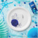 royal blue & silver flowers botanical paper plate
