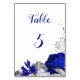 royal blue & silver flowers table number card