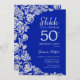 Royal Blue Silver Roses Surprise 50th Birthday Invitation
