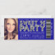 Ticket sweet 16 invitation with silver Hollywood marquis lights Sweet 16 Party with bar code and ticket style layout. This beautiful royal blue and silver Sweet sixteen party invitation is easily customised for your event by simply adding your details. You can change the background colour on the front and back.