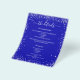 A modern, elegant wedding program/details/timeline. A royal blue coloured background decorated with faux silver glitter sparkles. Personalise and add your names and wedding details. White coloured letters.