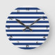 Royal Blue Stripes Pattern Round Clock