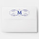 This is your basic white invitation envelope with a solid royal blue interior. The back flap has an added attraction, a distinguished matching blue swirl frame with your monogram. This formal envelope works well with any 5 x 7 or smaller invitation. To see other sizes available, choose "Customise". You may also use that option to change the outside colour of the envelope from white to a variety of colours, or change the font, location, size, or colour of the monogram.