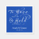 You can personalise the bride and groom's name and wedding date on these modern royal blue (cobalt blue) typography script "To Have and to Hold" personalised bride groom wedding paper napkins. Great wedding napkins for a spring, summer, or winter wedding.
