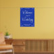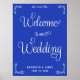 Royal blue wedding reception sign print with white swirls and customisable text - you can add bride's and groom's name and wedding date.  Dimensions of the sign print (poster) are 18 inches by 24 inches.