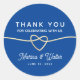 Simple, elegant, minimal, royal blue wedding thank you sticker for favours with gold rope heart and modern calligraphy script.
