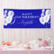 For a girly and glamourous 21st (or any age) birthday party. A royal blue background. Decorated with white balloons. Personalise and add a name and age 21. White letters. The name is written with a modern hand lettered style script with swashes.