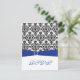Royal Blue, White, Black Damask Reply Card