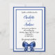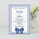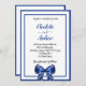 Royal blue white elegant bow script wedding invitation