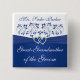 This personalised royal blue and white floral Great-Grandmother of the Groom button with a PRINTED royal blue ribbon and a pair of PRINTED FAUX glitter and diamond jewel joined hearts brooch on it that matches the wedding invitation shown below. The text is customisable and so is the shape and size of the button. ****PLEASE note that if you change the shape that text may get cut off. It will print as it appears on your monitor, and you must allow adequate space around the edges, so do NOT run text right up to the edge. If you need anything changed, please email niteowlstudio@gmail.com.