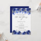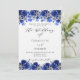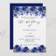 Royal blue white florals script luxury wedding invitation