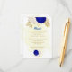 Romantic royal blue & white flowers with gold leaves botanical wedding details enclosure cards.
