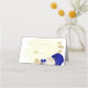 Romantic royal blue & white flowers with gold leaves botanical wedding place card.