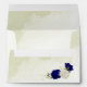 Beautiful wedding envelope featuring royal blue and white flowers and green leaves