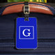 Royal Blue White Framed Initial Monogram Luggage Tag