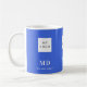 A classic royal blue background. Personalise and add your business logo (3), a name and monogram initials (3).