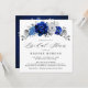 Elegant royal blue white silver theme bridal shower Invitation featuring elegant bouquet of royal blue, Navy, silver, pure white colour rose flowers buds and sage green eucalyptus leaves. Please contact me for any help in customisation or if you need any other product with this design.