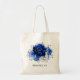 Elegant royal blue white silver theme wedding bridesmaid gift tote bag featuring elegant bouquet of royal blue, Navy, silver, pure white colour rose flowers buds and sage green eucalyptus leaves. Please contact me for any help in customisation or if you need any other product with this design.