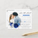 Elegant royal blue white silver theme wedding save the date postcard featuring elegant bouquet of royal blue, Navy, silver, pure white colour rose flowers buds and sage green eucalyptus leaves. Please contact me for any help in customisation or if you need any other product with this design..