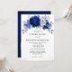 Elegant royal blue white silver theme wedding Invitation featuring elegant bouquet of royal blue, Navy, silver, pure white colour rose flowers buds and sage green eucalyptus leaves. Please contact me for any help in customisation or if you need any other product with this design.