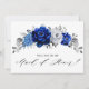 Elegant royal blue white silver theme will you be my maid of honour Invitation featuring elegant bouquet of royal blue, Navy, silver, pure white colour rose flowers buds and sage green eucalyptus leaves. Please contact me for any help in customisation or if you need any other product with this design.
