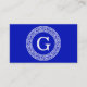 Royal Blue Wt Greek Key Rnd Frame Initial Monogram Business Card