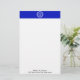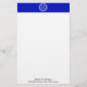 Royal Blue Wt Greek Key Rnd Frame Initial Monogram Stationery