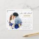 Elegant royal blue gold theme wedding calendar save date postcard featuring elegant bouquet of royal blue, Navy, gold, yellow colour rose flowers buds and eucalyptus leaves. Please contact me for any help in customisation or if you need any other product with this design.