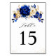Royal Blue Yellow Gold Metallic Floral Wedding Table Number