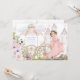 This darling invitation features a brunette princess standing near a royal carriage frame that surrounds all the fun party details. The back of this invitation has a coordinating castle. Colours include: Pink, purple, lavender, grey and green. You can personalise with all your party details. Perfect for princess theme or castle theme!