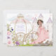 This darling invitation features a princess with black hair and dark skin standing near a royal carriage frame that surrounds all the fun party details. The back of this invitation has a coordinating castle. Colours include: Pink, purple, lavender, grey and green. You can personalise with all your party details. Perfect for princess theme or castle theme!