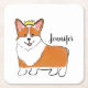 Royal corgi personalized pet dog coaster with an illustrated design.