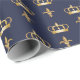 Royal Crown and Fleur de Lis Pattern on Blue Wrapping Paper