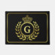 Royal Crown Laurel Wreath Black Gold Monogrammed Doormat