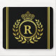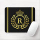Royal Crown Laurel Wreath Black Gold Monogrammed Mouse Pad
