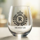Royal Crown Laurel Wreath Black Monogrammed Name Stemless Wine Glass