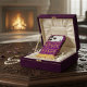 This design features a rich, moody watercolor palette of deep purples and plums, complemented by high-definition printed metallic-style accents that mimic the look of gold leaf without the worry of peeling or fading.