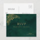 Royal Emerald Green Gold Floral Wedding RSVP Postcard