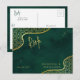 Royal Emerald Green Gold Glitter Wedding RSVP Postcard