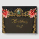 Royal gold and red floral design guest book