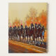 A dramatic abstract image of a group of Royal Guardsmen riding down a London street on Horseback in the spring. Customers can add text.