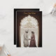 Announce your special day with this elegant and traditional Indian wedding "Save the Date" card. The beautiful design features a hand-painted illustration of a regal Indian couple framed by a stunning, intricately carved archway. The rich, earthy tones of deep brown and maroon create a warm and inviting feel, while the gold accents add a touch of luxury. This customisable template is perfect for a Hindu or South Asian wedding, with ample space to personalise the names, date, and location. Ideal for a "Save the Date" or a digital invitation, this card beautifully captures the essence of a timeless love story.