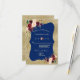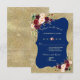 Royal Navy Blue Blush Floral Gold Wedding RSVP Card