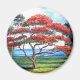 Fantastic colours are seen in the blooming red royal poinciana tree by nationally known artist Mazz. This highly collectable artist is Known for palette knife work, bold brush strokes and extreme depth perspective.