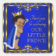 Royal blue and gold prince baby shower favour stickers with adorable baby boy prince on on a beautiful blue and gold swirl background. These prince baby shower stickers are easily customised with your text.