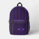 Royal Purple Black Vintage Striped Name Printed Backpack