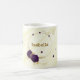 Beautiful royal purple flowers & gold leaves on marble background coffee mug
