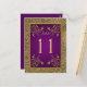 This royal purple and gold floral FAUX textured table number postcard matches the wedding invitation shown below. **You must change the number 11 to each of the table numbers you need, add it to your cart, and then return and repeat the process until you have all the individually numbered cards that you need in your cart. Stand it on a small easel, or in your centerpieces. If you need assistance, email niteowlstudio@gmail.com.