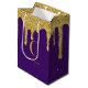 Royal Purple Gold Sparkle Glitter Drips Monogram Medium Gift Bag